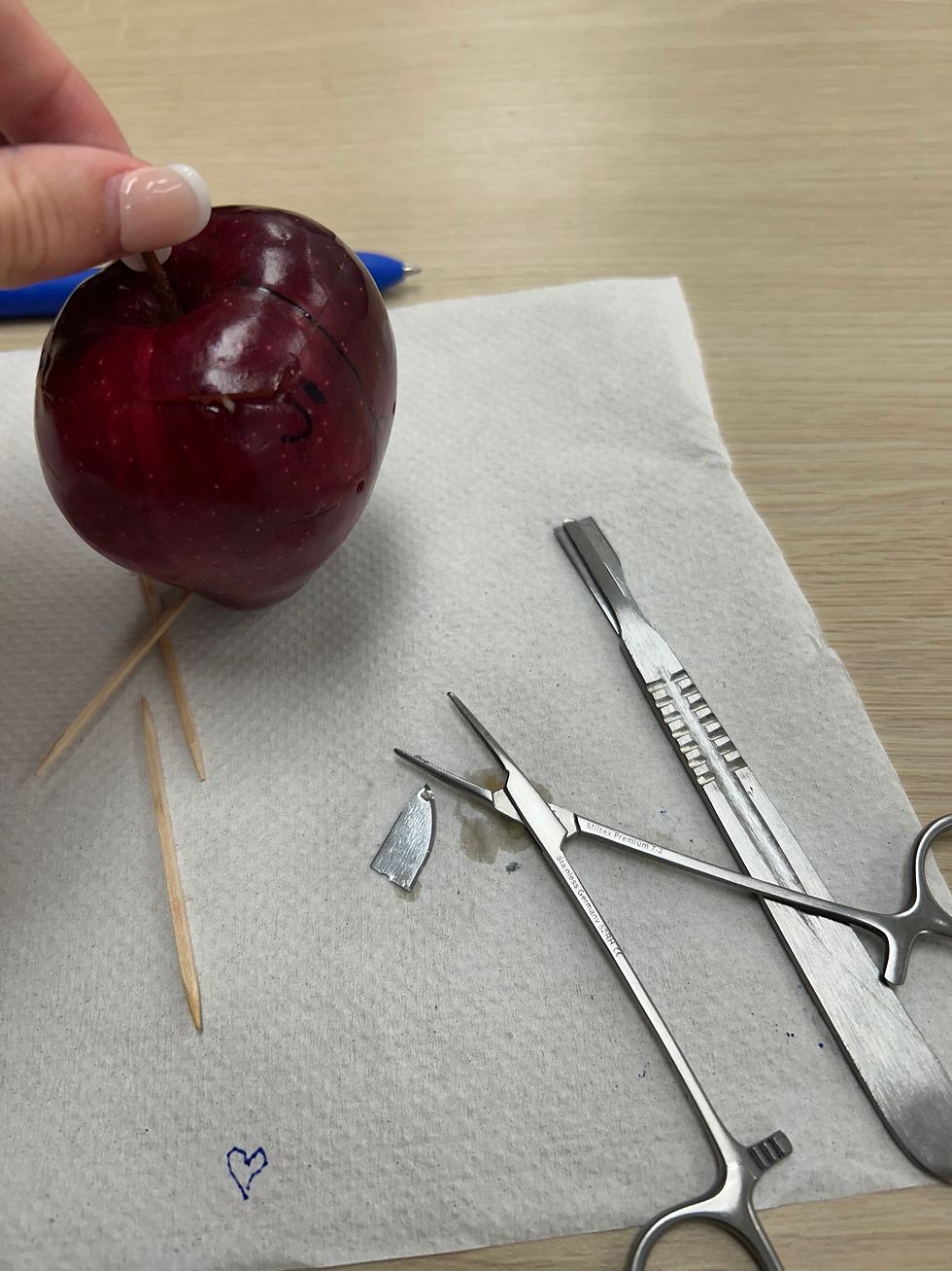 The last activity of the week was the Apple Anatomy Lab. This was very difficult, especially if you were not precise with your decisions and cuts. In this lab, we used proper anatomical terminology to determine body planes, surfaces, and body directions while following step-by-step instructions to cut our apple. It was hard but also very enjoyable. Some of my other classmates were stressed, while others approached it by taking it step by step. During the lab, my knife snapped off, and the blade got stuck inside of my apple. The main lesson I have learned from this lab was the importance of being patient, considering that once you make a cut, you can not undo it.